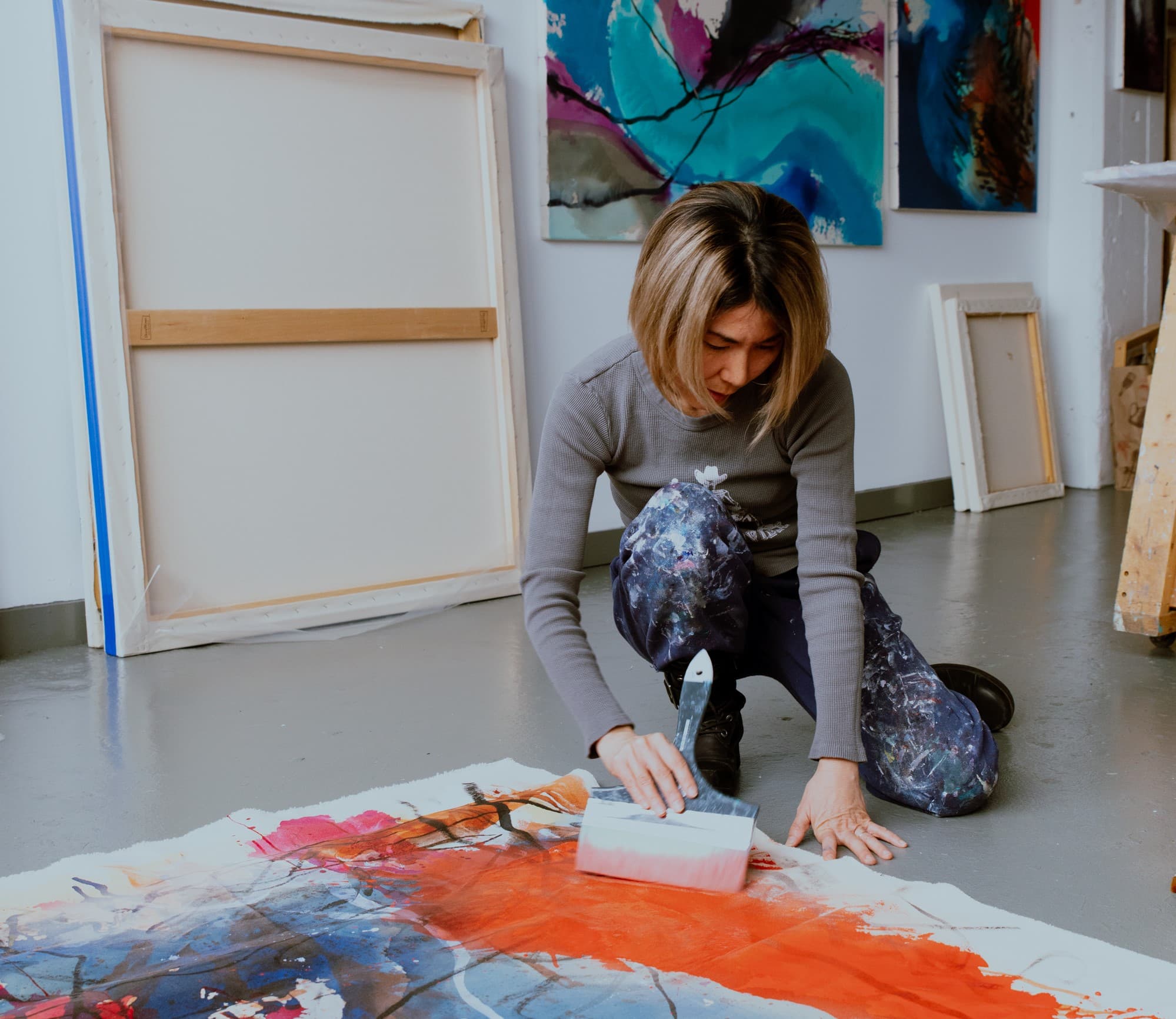 Soyoung L. Kim at work in her studio. Photo by Mel Taing. Courtesy of the artist.