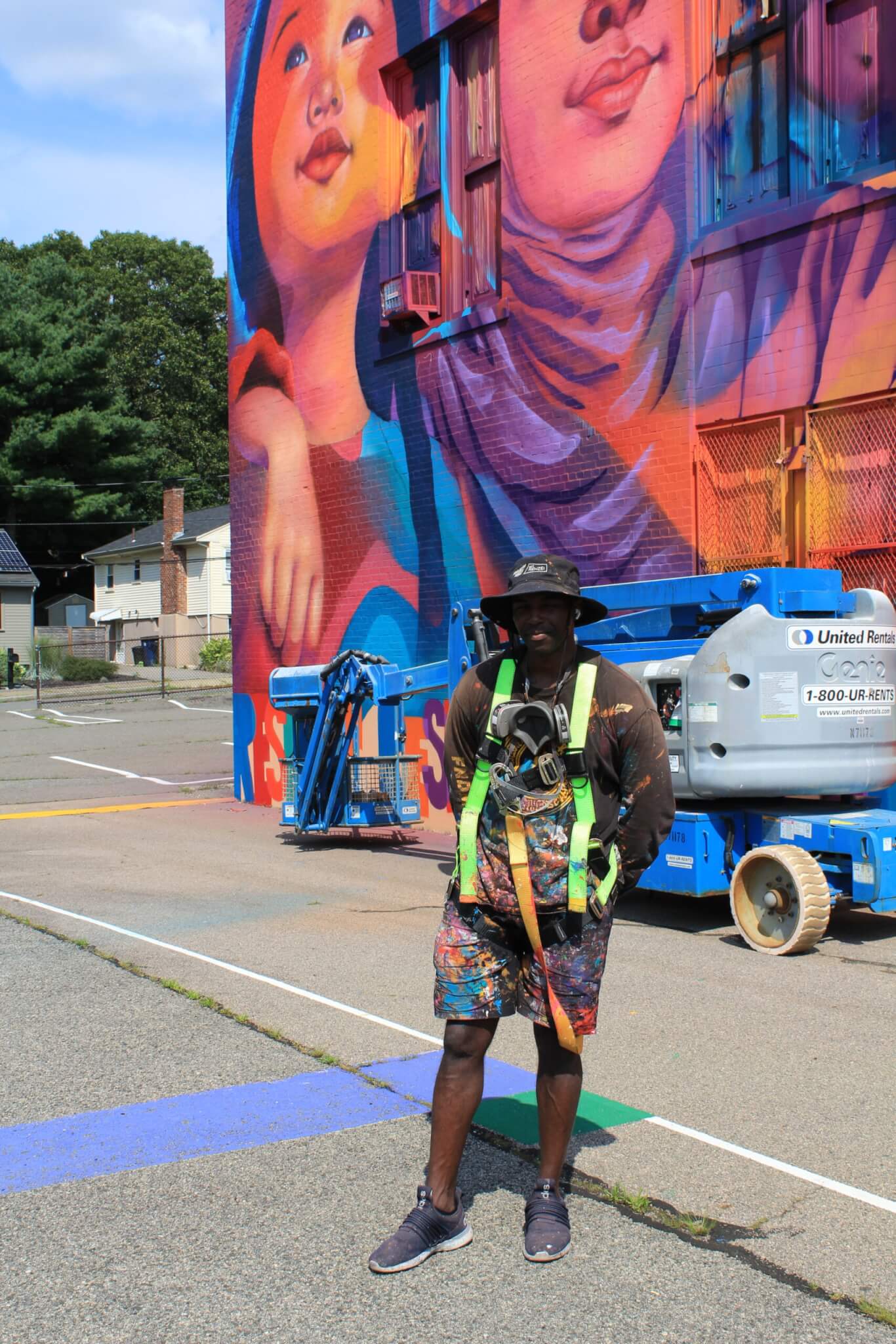 “Everything about A Canvas of Culture felt like it was meant for me to find,” O’Connor shared, “so I poured my heart into the application, with the central focus on the individuals who would be impacted the most by receiving it, our incredible students.” Once the Kilmer was selected as a location, Quiñonez met with O’Connor and other school staff members via Zoom and presented the virtual portfolios of seven potential artists. The staff selected their top three choices, with Detour being the first. “There were fifteen to twenty different [site] options,” Detour said, “and I landed on Joyce Kilmer. I did the Google search and everything and saw where it was and said, ‘Let me apply for that school right there.’” Other schools selected for the mural project include the The Rafael Hernández Dual Language K-8 School in Roxbury and Charlestown High School.