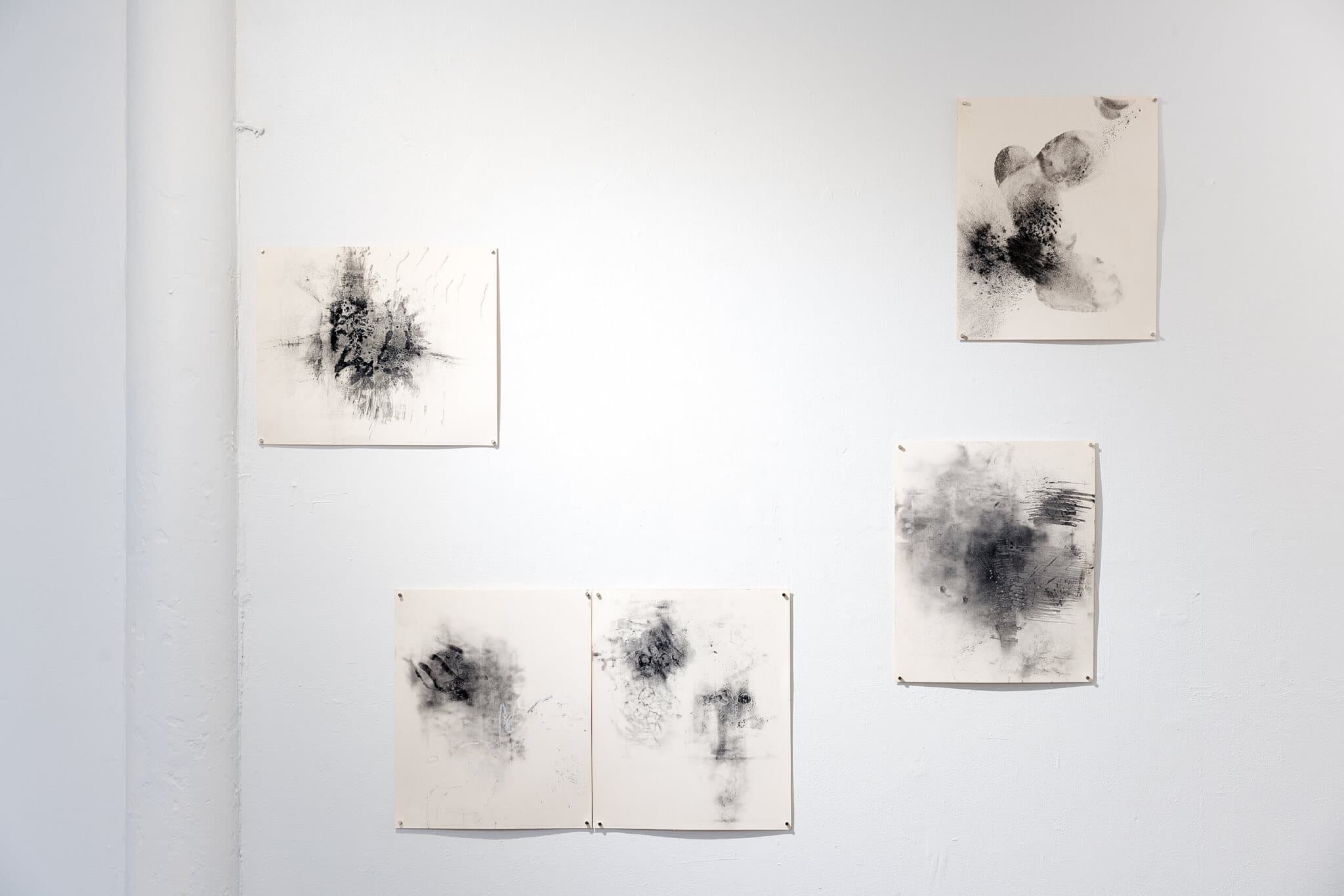 Martha Schnee, various numbered charcoal drawings titled Electric Transmissions, all 2025. Photo by Yulia Spiridonova.