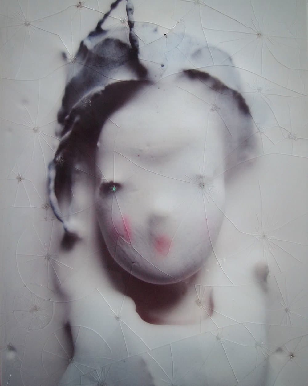 The final series of girls are three photographic portraits, two of which have been hazily imprinted onto the backs of broken pieces of glass. These point to the irreconcilable damage caused by an adolescence void of healthy relationships with one’s surroundings. The glass is strategically broken on the girls’ eyes, rendering them affectless, perhaps a sign of disfiguration after the trials of growing up relatively alone. Todhunter moves seamlessly between past and present, presenting them together to suggest the recurrence and proliferation of the “lost girls” in an age of technological dysphoria. Todhunter demonstrates how easy it is for today’s technological world to reshape, rename, reconstitute and disedify our own “lost girls.”